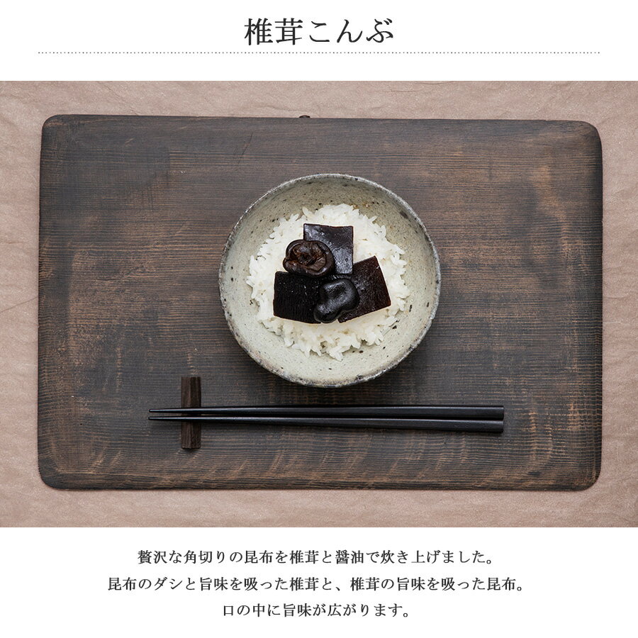 商品情報 名称佃煮 原材料名昆布、醤油(小麦・大豆を含む)、しいたけ、砂糖、還元水あめ、還元麦芽糖、梅酢、寒天 / 調味料(アミノ酸等)、保存料(ソルビン酸K) 内容量100グラム 賞味期限製造日から150日 保存方法直射日光及び高温多湿をさけて常温で保存してください。